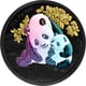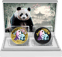 Diese **Silbermünzen** zeichnen sich durch ihre aufwendige Gestaltung und hochwertige Veredelung aus. Eine der Münzen im Set zeigt Pandas, deren Motiv und Rand mit Ruthenium und einer Teilvergoldung veredelt sind. Der Hintergrund der Münze, außer den Blättern, ist mit Ruthenium verdunkelt, während die Blätter teilvergoldet sind. Die Pandas selbst sind mit einem atemberaubenden Hologramm-Effekt hervorgehoben. Bei der anderen Münze ist das Design umgekehrt: Der Hintergrund ist vergoldet, und die Pandas sowie die Blätter sind mit dem Hologramm-Effekt versehen.