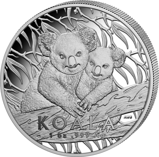 Meisterhafte High Relief Prägung: Die beeindruckende Tiefenwirkung und höchste Prägequalität Polierte Platte verleihen dem Koala-Motiv eine faszinierende dreidimensionale Brillanz