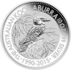 • Motiv: Die Münze präsentiert auf ihrer Motivseite einen Kookaburra, den lachenden Eisvogel Australiens, in einem naturnahen Design. Umgeben von Eukalyptusblättern und Farn, sitzt der Vogel auf einem Baumstumpf und blickt aufmerksam in die Ferne.