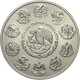 Auf der Rückseite der Münze ist das mexikanische Staatswappen zu sehen – ein Adler, der eine Schlange in seinen Krallen und im Schnabel hält. Dieses kraftvolle Emblem ist ein Zeichen der Stärke und Entschlossenheit des mexikanischen Volkes.