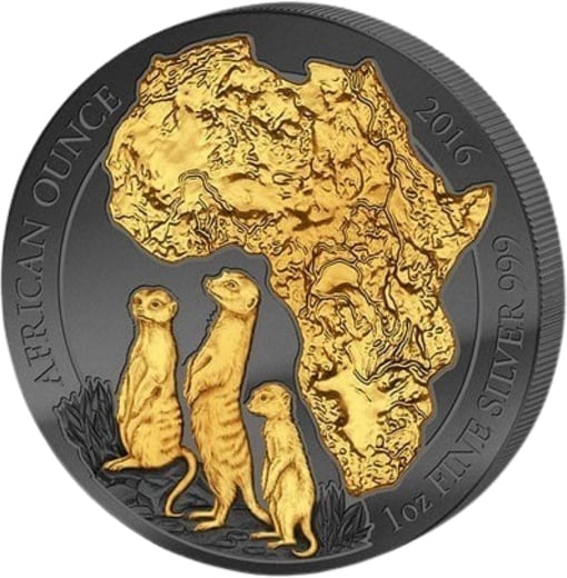 1 Unze Silber Ruanda Erdmännchen 2016 (teilvergoldet | Golden Enigma Edition)