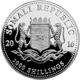 - Motiv: Die Münze zeigt auf der Vorderseite ein beeindruckendes Motiv eines Elefanten in der Wildnis Somalias und auf der Rückseite das Wappen der Republik Somalia.