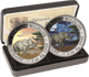 Das Set besteht aus zwei Münzen, die jeweils ein einzigartiges Elefantenmotiv tragen - eines, das den majestätischen Elefanten bei Tag und das andere, das ihn bei Nacht darstellt. Die Münzen sind coloriert, was den Detailreichtum und die Schönheit des Designs zusätzlich hervorhebt. Beide Münzen haben einen Durchmesser von 38,60 mm und sind aus reinem Silber mit einer Feinheit von 999/1.000 geprägt.