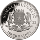 Auf der Wertseite des gesetzlichen Zahlungsmittels in dem ostafrikanischen Land wird mit „Republic Somali“ auf das Ausgabeland verwiesen, zudem auf das Prägejahr sowie die Währungsangabe von 100 Somalischen Shilling. Abgebildet ist zudem das offizielle Wappen.