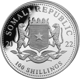 Das Somalia Elefant Motiv ist allein für sich schon ein Kaufargument. Bei dieser Sonderausführung bekommen Sie jedoch noch ein zusätzliches Motiv dazu. Rechts neben dem Elefanten ist hier ein kleiner Privymark-Tigerkopf zu sehen. Als Privymark wird ein kleiner Kreis auf der Münze bezeichnet. Darin abgebildet ist jeweils ein besonderes Motiv, hier der Tiger am rechten Rand der Münze. Ebenfalls zu sehen sind der Feinheitsgrad von 999,9 sowie das Gewicht in 1 Unze. Auf der Rückseite der 1 Unze Silber Somalia Elefant 2022 sehen Sie wie gewohnt mittig das Somalische Staatswappen, das Prägejahr und den Nennwert von 100 Shilling.