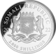 Wer sich mit den Motiven des Somalia Elefanten auskennt weiß, dass er eher allein als in Gesellschaft zu sehen ist. Auf dem aktuellen Motiv ist ein erwachsener Elefant zu nächtlicher Uhrzeit zusammen mit einem kleinen Elefanten unterwegs. Drei Vögel gesellen sich zu ihnen und ziehen mit ihnen vorbei an den typischen Bäumen der Savanne. Hoch über den Tieren Afrikas leuchtet der Mond und leitet ihnen den Weg. Das Motiv verfügt eine klare Umrandung, in der sich die Schriftzüge „AFRICAN WILDLIFE“, „ELEPHANT“, sowie „1 kg Ag 999.9“. Die Rückseite zeigt sich in gewohnt klarer Gestalt einer hochwertigen Anlagemünze. Zu sehen ist die Abbildung des Wappens und Schriftzugs der Republik Somalias sowie der Nennwert „2.000 SHILLINGS“ und das Prägejahr „2022“.