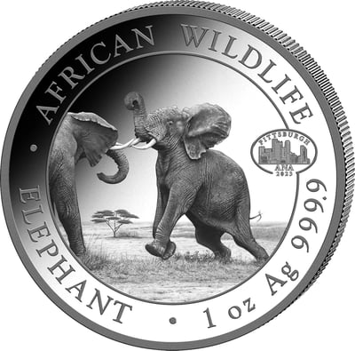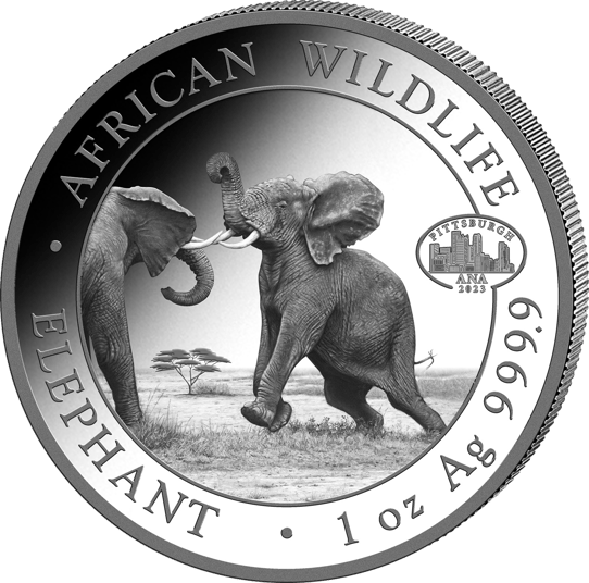 1 Unze Silber Somalia Elefant 2024 Motiv (PM: ANA Pittsburgh | Auflage: 1.000 | Jahrgang 2023)
