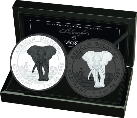 Silber Somalia Elefant Black & White Set 2025 (Auflage: 500 | 2 Münzen)