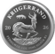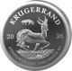 Die zweite Münze des Sets ist nicht weniger beeindruckend: Der Silber Krügerrand 2026 zeigt auf der Vorderseite das ikonische Porträt von Paul Kruger, umrahmt von der zweisprachigen Inschrift „SUID-AFRIKA · SOUTH AFRICA". Die Rückseite präsentiert den springenden Springbock – das Wahrzeichen Südafrikas – zusammen mit dem kleinen Leoparden-Privymark, der diese Ausgabe so besonders macht. Die Aufschrift „FYNSILWER 1 OZ FINE SILVER R1" bestätigt den Edelmetallgehalt.