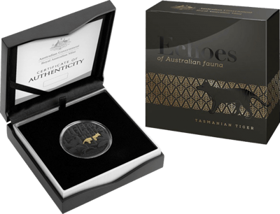 1 Unze Silber Tasmanischer Tiger 2019 PP (Auflage: 5.000 | Teilvergoldet | Black-Nickel-Veredelung)