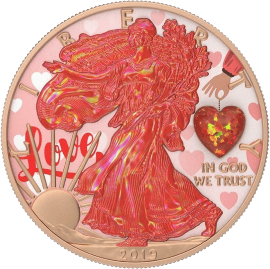 1 Unze Silber American Eagle 2019 Herzamulett (coloriert |Opal | Auflage: 500)