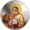 Die Evangelisten wurden gemäß der Tradition mit ihren Begleitern abgebildet: Matthäus mit einem Menschen (hier als Engel zu sehen), Markus mit einem Löwen, Lukas mit einem Stier und Johannes mit einem Adler. Der Heiligenschein ist dabei vergoldet und der jeweilige Evangelist mit einer Kolorierung versehen.