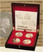 Die vier Münzen werden in einem edlen Holzetui ausgeliefert.