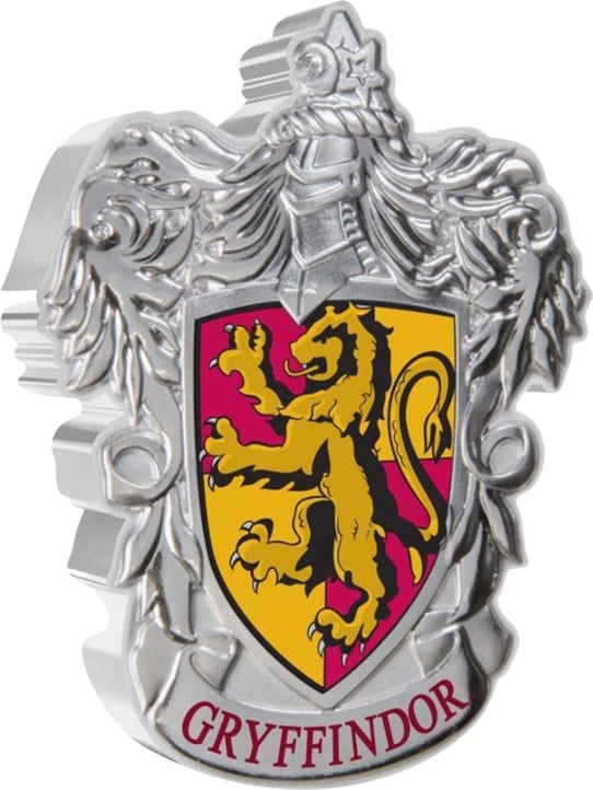 Seit 1997 begeistern die Abenteuer von Harry Potter und seinen Freunden Jung und Alt. Die Schriftstellerin Joanne K. Rowling erschuf mit den Geschichten rund um die Zauberwelt eine kaum vorstellbare Erfolgsgeschichte. Insgesamt kamen 7 Bücher und 8 Filme auf den Markt und ein Rekord jagte den nächsten. Allein in Deutschland wurden über 33 Millionen Bücher verkauft und die Filmreihe gilt als eine der erfolgreichsten der Filmgeschichte. Die Geschichten haben es geschafft, dass die Zauberwelt und die Muggelwelt vereint wurden und viele Kinder bekamen ein anderes Bild von Hexen und Zauberern. Einer der wichtigsten Orte in der Zauberwelt und in den Abenteuern von Harry und seinen Freunden ist die Hogwartsschule für Hexerei und Zauberei, denn auch junge Hexen und Zauberer müssen sich Ihr Wissen aneignen. Hogwarts ist eine der angesehensten Schulen in der Zauberwelt. Gegründet von den zwei Hexen Rowena Ravenclaw und Helga Hufflepuff und den beiden Zauberern Godric Gryffindor und Salazar Slytherin vor über 1.000 Jahren ist die Schule in die 4 jeweiligen Häuser eingeteilt. Die neueste Münze zeigt das Wappen des Hauses Gryffindor, in welchem Hermine, Ron und Harry sind. Das Wappen zeigt einen Löwen auf einem rot-gelben Hintergrund.