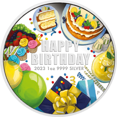 1 Unze Silber Happy Birthday 2023 PP (coloriert | Polierte Platte)