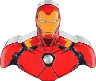 Diese Silbermünze ist so geformt, dass sie die Gestalt von Iron Mans™ Oberkörper annimmt. Sie ist auch in den Farben eingefärbt worden, aus denen auch der charakteristische Schutzanzug des Helden besteht. Beides, der Schutzanzug und die Münze, haben eine rote Farbe. Der Schutzanzug von Iron Man™ hat ein individuelles Design und erfüllt mehrere praktische Funktionen. Er wurde aus einem sehr starken, fiktiven Material gefertigt. Dadurch schützt er seinen Träger vor Verletzungen. Der Anzug hat auch die Funktion, die Kraft und Stärke des Trägers zu vervielfachen. Dadurch ist der Träger in der Lage, Gewichte zu stemmen, die er sonst niemals hochheben könnte. Zudem verleiht der Anzug dem Träger auch die Fähigkeit zu fliegen. Und zwar mit Hilfe von einem Antriebssystem und Flugstabilisatoren. Der Anzug ist zudem mit mehreren Waffen ausgestattet. Darunter Raketen.