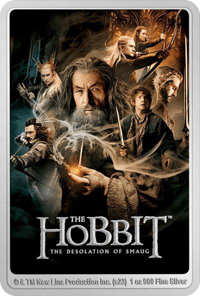 Präsentiert in der höchst möglichen Prägequalität „Polierte Platte“ (PP), besticht diese Münze durch ihre exzellente Verarbeitung und ihr einzigartiges Design. Das Motiv zeigt eine detailreiche Abbildung des Original-Filmplakates von "Der Hobbit™ - Smaugs Einöde". Auf der Rückseite sind das Wappen von Niue sowie der Nennwert und das Ausgabejahr zu sehen. Mit einem Feingewicht von 31,10 g und einer Feinheit von 999/1.000, ist sie ein wertvolles Anlageprodukt aus Silber.