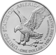 Die Rückseite der Münze zeigt den ikonischen amerikanischen Weißkopfseeadler, der einen Eichenzweig in seinen Klauen hält. Umgeben ist das Adler-Design von den Worten "UNITED STATES OF AMERICA", "ONE DOLLAR - 1OZ. FINE SILVER", was die Herkunft und den Feingehalt der Münze bezeugt.