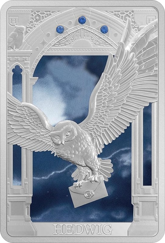 Die treue Schnee-Eule Hedwig ist ein unvergesslicher Charakter aus der Harry Potter-Reihe. Sie begleitete Harry durch zahlreiche Abenteuer und zeichnete sich durch ihre Treue und Opferbereitschaft aus. Mit dieser Münze können Sie ein Stück dieser Magie besitzen und Ihre Sammlung um ein einzigartiges Stück erweitern.