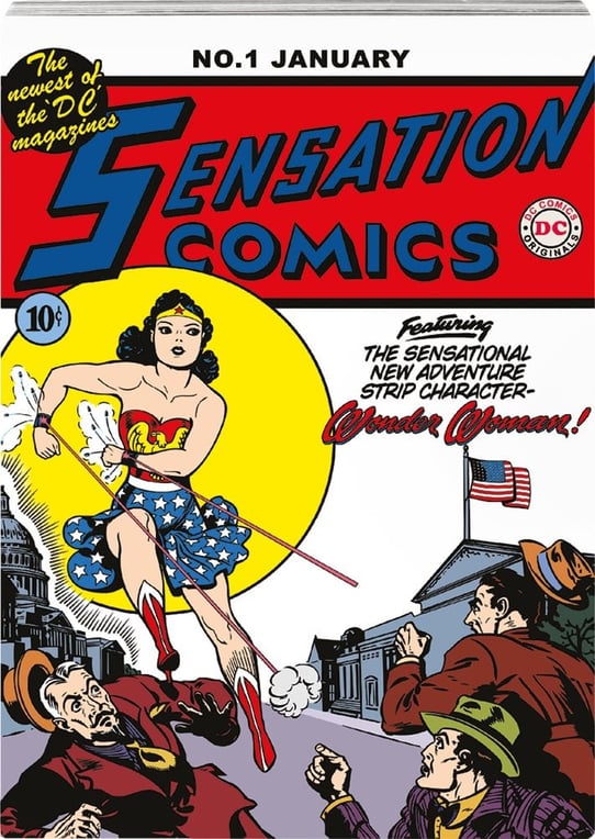 Historischer Wert: Detaillierte Nachbildung des Sensation Comics #1 Covers mit Wonder Woman