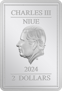 Auf der Rückseite der Münze prangt das Porträt von König Charles III., zusammen mit dem Ausgabejahr „2024“ und dem Nennwert „TWO DOLLARS“. Diese Details unterstreichen die Exklusivität und den Sammlerwert der Münze.