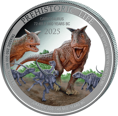 1 Unze Silber Prehistoric Life Carnotaurus 2025 (Auflage: 2.000)