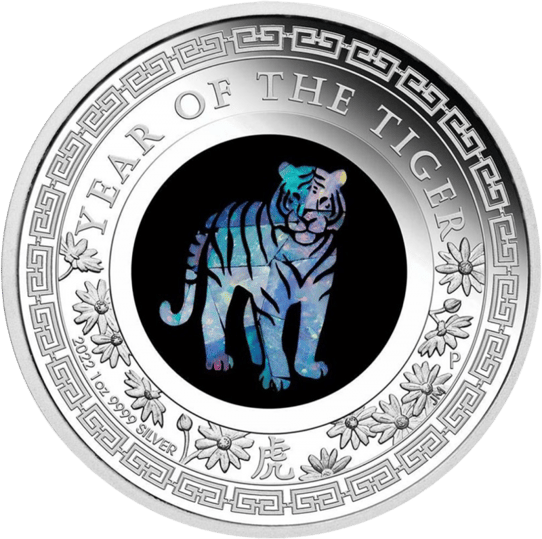 Eine der begehrtesten Münzen aus der Lunar III Serie 2022 erscheint nun endlich. 1 Unze Silber Lunar III Tiger Opal.