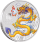 Auf der Vorderseite der Münze wird ein beeindruckender colorierter chinesischer Drache dargestellt, der in der chinesischen Kultur als ein mächtiges Symbol für Glück, Kraft und Weisheit gilt. Umgeben von Wolken, hält er die flammende Perle der Weisheit fest – ein Motiv, das nicht nur die Tradition ehrt, sondern auch eine beeindruckende Ästhetik bietet. Die Rückseite zeigt ein Porträt von Queen Elisabeth II, das ihre langjährige Regentschaft ehrt, zusammen mit dem Nennwert von 1 AUD und Details zum Feingewicht und der Feinheit des Silbermünzen-Materials.