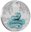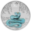 Beeindruckende Farbveredelung der Schlange in türkis-blauen Tönen auf 5 Unzen reinstem Silber