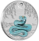 Einzigartiges Design: Die kunstvoll colorierte Schlange in faszinierenden Blautönen, umrahmt von filigranen Weidenblättern, zeigt höchste Prägekunst der Perth Mint