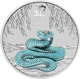 Faszinierende türkisfarbene Schlange in brillanter Kolorierung auf feinstem 999,9er Silber