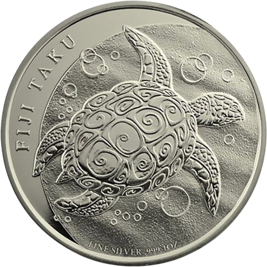 In der Landessprache der Fidschi-Inseln heißt Taku Schildkröte. Links über dem Bild der Schildkröte sind die Worte Fiji und Taku eingeprägt, außerdem ist das Gewicht und die Qualität des Materials durch die Beschriftung „Fine Silver 999 1oz“ am unteren Rand der Münze angegeben.