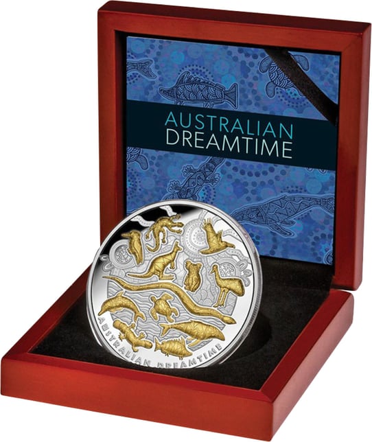 Exklusive Rarität: 5 Unze Silber Australian Dreamtime Niue PP 2019 teilvergoldet