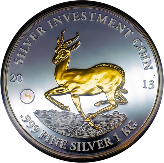 – 1 Kilo Silber Springbock 2013 mit filigranster „24k Teilvergoldung” auf dem Motiv