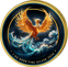 Meisterhafte Veredelung aus Deutschland: Der mythische Phoenix erstrahlt in kunstvollen Goldtönen über dramatischen Meereswellen – ein faszinierendes Zusammenspiel aus Silber, Gold und Farbe