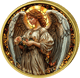 • checkmark greenExklusiv bei Kettner erhältlich: kunstvoll colorierter Schutzengel im Kirchenfenster-Stil mit edler Goldveredelung
