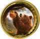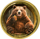 Beide Seiten dieser außergewöhnlichen Münze zeigen einen imposanten Braunbären in seiner natürlichen Umgebung – und das in einer Detailtreue, die schlichtweg sprachlos macht. Auf der Vorderseite sitzt der mächtige Bär gemütlich im Wald, hält eine tropfende Honigwabe in seiner Pranke und streckt vergnügt die Zunge heraus. Ein kleiner Schmetterling flattert neben ihm. Die Rückseite zeigt denselben Bären, wie er sich gierig an einer am Baum hängenden Honigwabe bedient – im Hintergrund erstreckt sich eine majestätische Berglandschaft mit Nadelwäldern. Der goldene Rand rahmt beide Szenen wie ein kostbares Gemälde ein und verleiht der Münze eine geradezu dreidimensionale Tiefe.