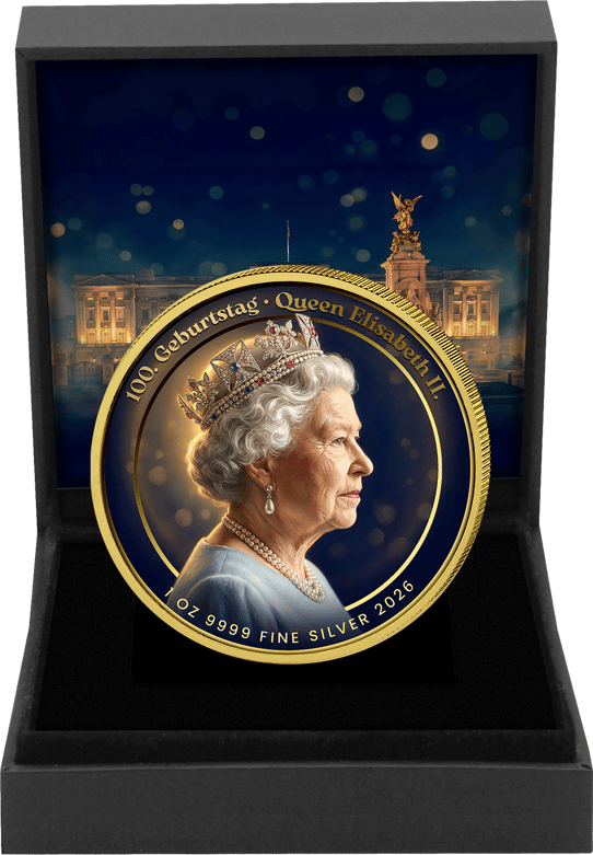 1 Unze Silber 100. Geburtstag Queen Elizabeth II. 2026 (Auflage: 100 | teilvergoldet)