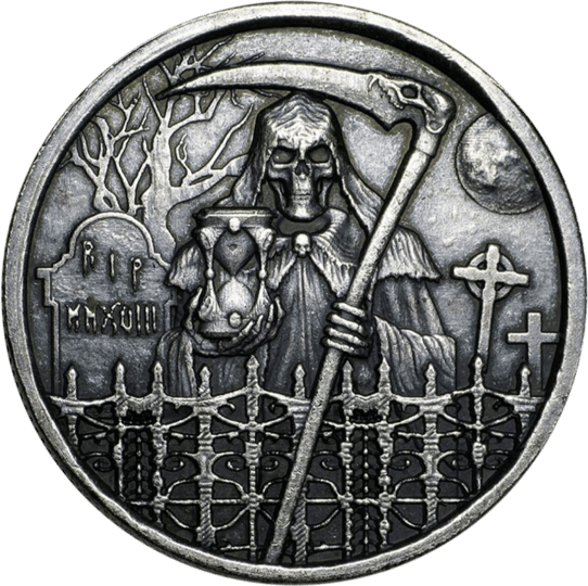 Der Tod, auch als Sensenmann bekannt, wird mit dieser limitierten Münze repräsentiert- Diese Medaillen werden im ultrahohen Relief gefertigt, was die makellose Handwerkskunst zeigt, die den Sensenmann realistisch wirken lässt.