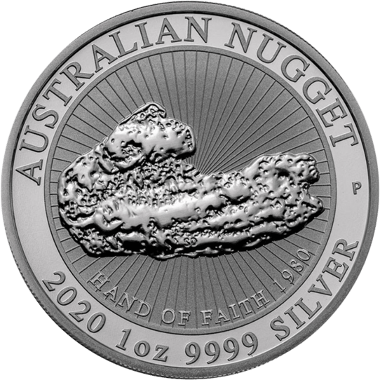 Mit Sonderausgaben besonderer Bullion-Münzen hat die Perth Mint schon oft für Furore gesorgt, beispielsweise mit dem Australian Emu. Im März 2019 begeisterten die Australier ihre Fans mit einer neuen Serie, welche das Zeug hat, zu einer der beliebtesten Anlagemünzenserien überhaupt zu werden: Mit der „Australian Nugget„-Serie legt die Perth Mint ein völlig neues Produkt mit einer kuriosen Geschichte auf. Nach dem großen Erfolg des „Welcome Stranger Nugget“ folgt nun das zweite Motiv der Serie, der „Hand of Faith – Hand des Glaubens“ Nugget. Wie auch beim Känguru Nugget, die bekannteste Münze der Perth Mint, ist der Hintergrund der Motivseite mit einem strahlenförmigen Muster versehen. Am Rand ist die Feinheit, das Gewicht, der Jahrgang sowie die Bezeichnung Australian Nugget zu sehen. Die Münzvorderseite wird klassisch von einem Portrait der Queen Elisabath II geziert, sowie dem Nennwert von 1 Dollar.