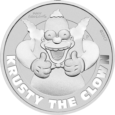 Ikone der Popkultur: Krusty der Clown verewigt in Silber, ein Must-Have für Fans und Investoren