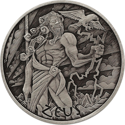 Die erste Münze der Serie ist dem griechischen Göttervater Zeus gewidmet. Zeus und seine Geschwister mussten ihren Vater Kronos sowie die riesigen Titanen bekämpfen, um die Herrschaft über die Welt zu erringen. Nachdem die Götter die Titanen besiegt haben begann laut der griechischen Mythologie das Leben und die Menschen waren ein Geschenk von Zeus.
