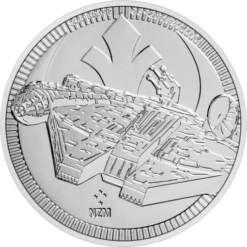 Die Münze zeigt auf der Vorderseite das ikonische Raumschiff Millennium Falke aus der Star Wars-Saga. Er war das Schiff von Han Solo und seinem Co-Piloten Chewbacca und hat sich während der Rebellion in vielen Schlachten bewährt. Der Hintergrund zeigt das Logo der Rebellen-Allianz. Das Design der Münze beinhaltet außerdem das Copyright von Lucasfilm Ltd. und das Logo der New Zealand Mint.