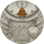 Diese Münze führt Sie in die aufregende Welt der Oper – ein klassisches Motiv der Kunst und Kultur! Statt Ihnen die sicherlich ebenfalls beeindruckende Architektur vor Augen zu führen, stellt das detaillierte Werk das gefühlvolle Ambiente aus der Sicht des Zuschauers dar. Hauptmerkmal und außergewöhnlicher Blickfang der Münze ist der eingefasste „Kristallkronleuchter“, der die angespannte Stimmung im Saal vor Eröffnung der Spiele mit seinem Glanz überstrahlt. Umrahmt wird der sorgfältig eingefasste Kristall von der detaillreichen Abbildung der Deckendekoration mit gar erkennbaren Malereien. Die zahlreichen Zuschauerränge wiederum schließen das Bild nach unten in allen Einzelheiten ab.
