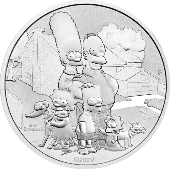 Die Simpsons-Familie wurde erstmals 1987 im TV gezeigt und erschien ursprünglich in 30 Sekunden langen Segmenten in der Tracey Ullman Show. Zwei Jahre später wurden den „Simpsons“ ein halbstündiges Serienformat gewidmet und die Sendung entwickelte sich sofort zu einem weltweiten Phänomen der Popkultur, welches bis heute in 60 Ländern und in 20 verschiedenen Sprachen zu sehen ist. Im Jahr 2018 wurden die Simpsons zur am längsten laufende Hauptsende-Serie der Fernsehgeschichte gekürt. Die Münze ist beim Hersteller binnen weniger Minuten ausverkauft gewesen und wird schon jetzt hoch gehandelt.