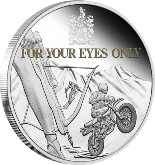 Die Silber-Anlagemünze ist dem Geheimagenten mit der „Lizenz zum Töten“ gewidmet – James Bond™ auch bekannt als 007™. Die Münze wurde von der Perth Mint aus einer Unze 99,99% reinem Silber geprägt. Den Auftakt in der erfolgreichen Bond-Reihe machte der Film „James Bond – 007 jagt Dr. No™“ im Jahr 1962. Damals verkörperte Sean Connery den Geheimagenten. Mittlerweile begeistern die actionreichen Abenteuer des MI6-Agenten seit mehr 50 Jahren die Zuschauer. Anlässlich des 40. jubiläums des Filmes „For Your Eyes Only“ oder auf deutsch, „In tödlicher Mission“, mit Rodger Moore als James Bond. Es war der zwölfte Bond Film aus der Reihe und der erste, der nicht auf einem Roman basierte. Das Design zeigt einen motorradfahrenden Attentäter, das Teilbild eines Frauenbeins und eine Armbrust, die vom Original-Filmplakat inspiriert sind. James Bond wird durch die Figur eines Skiläufers im Hintergrund dargestellt. Die Lieferung der limitierten Silber-Anlagemünze erfolgt in einer Kapsel.