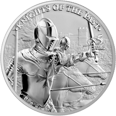 Auf der Vorderseite der Silbermünze befinden sich zwei Malteserrittern auf ihren Pferden. Die Szene einer Schlachtordnung ereignet sich vor dem Hintergrund des Verdala-Palastes. Der Palast ist die offizielle Residenz des amtierenden Präsidenten von Malta. Alle Game of Throne-Fans werden den Palast wiedererkennen, denn er diente in der Verfilmung der ersten Staffel als Palast in Pentos. Bis heute ist der Palast nicht öffentlich zugänglich. Oberhalb des Motivs findet sich der Schriftzug „KNIGHTS OF THE PAST“. Links findet sich zudem der Nennwert der Münze in Höhe von fünf Euro.