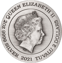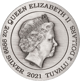 Auf der Rückseite der Wertanlage lässt sich die Abbildung von Queen Elizabeth II. finden. Der für dieses Porträt verantwortliche Künstler wird anhand der Kürzel IRB unter dem Hals der Queen gewürdigt. Dabei stehen die Initialen für den Künstler Ian Rank-Broadley. Zwischen dem Außenkreis und der Abbildung findet sich ein grob gezogener Kreis. Um ihn herum finden sich die Schriftzüge „QUEEN ELIZABETH II“, „2 DOLLARS“, „TUVALU“, “2021“ und „2 OZ 9999 SILVER“.