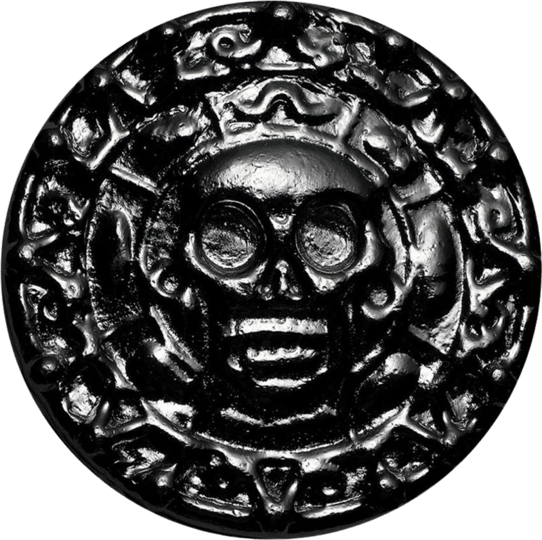 Diese handgegossenen Medaillen erinnern an Piraten Dublonen, wie man sie aus einem berühmten Film mit Johnny Depp als Pirat kennt. Das Aztekengold, wie es in dem Film bezeichnet wird, zeigt einen Totenschädel in der Mitte der Madaille umgeben von einer liebevollen Ornamentik. Durch die Handarbeit, ist keine Medaille wie die andere und es verleiht dem Produkt einen altertümlichen Charakter.