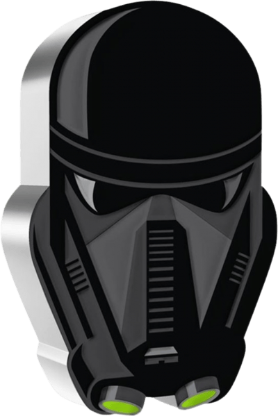 Die Münze ist einzigartig in ihrer Gestaltung, geprägt in der Form des Death Trooper-Helms und coloriert mit verschiedenen Schwarzschattierungen und einem Hauch von Grün. Dies verleiht dem Helm des Imperial Death Troopers eine beeindruckende optische Tiefe und Präsenz. Hergestellt aus Silber mit einer Feinheit von 999/1.000, wiegt diese Münze 1 Unze. Sie ist ein beeindruckendes Beispiel für die handwerkliche Kunstfertigkeit der New Zealand Mint und ein Beweis für die Fähigkeit von High Relief Prägungen, detailreiche und lebendige Bilder zu erzeugen.